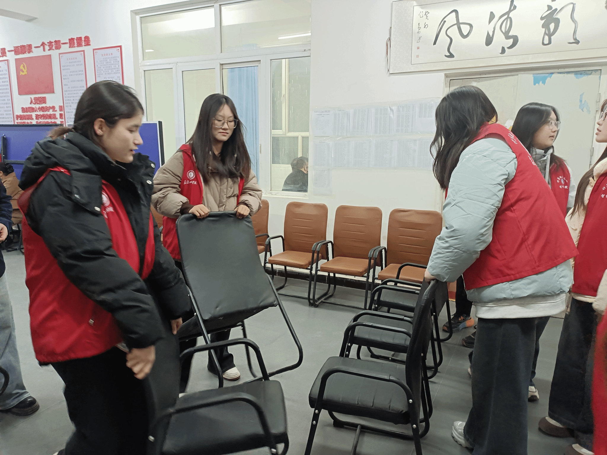 活动前期,志愿者团队提前与社区工作人员对接,明确活动流程与服务细节。到达现场后,志愿者们迅速分工、有序行动,有的负责从社区仓库搬运座椅,为了老年人就座舒适、观看方便摆放整齐;有的擦拭桌椅、清扫活动场地,保障现场环境整洁;有的调试音响、检查设备,为后续文艺表演做好准备。志愿者们以认真负责的态度完成各项筹备工作,为活动顺利开展奠定坚实基础。