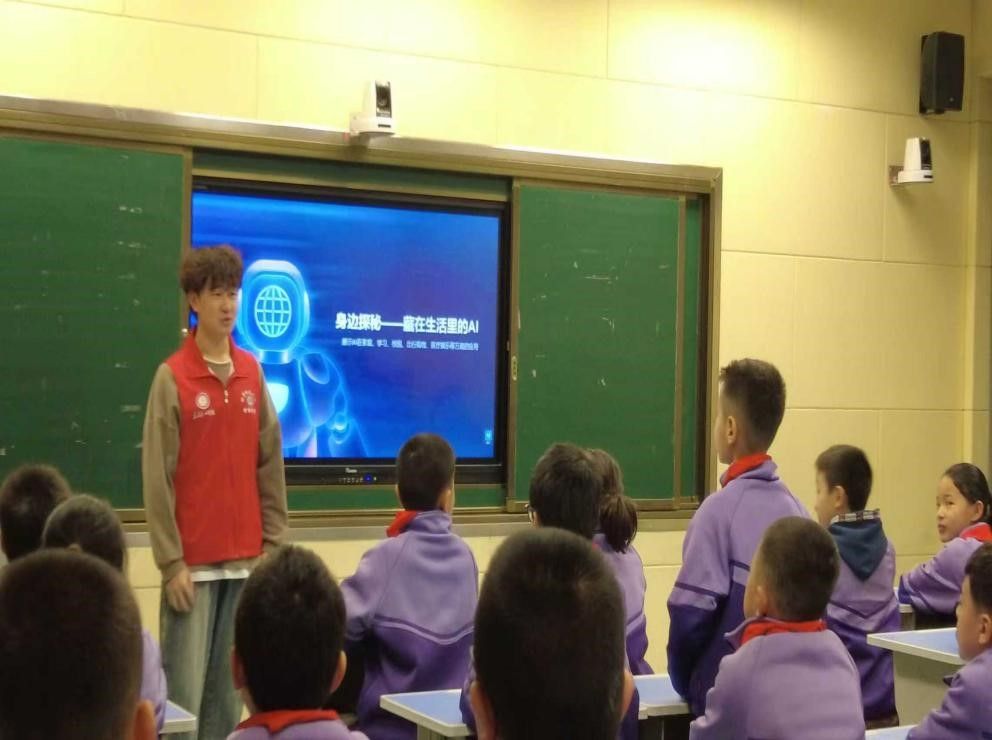 志愿者结合小学生的认知水平,分享人工智能在教育、医疗、环保等领域的应用,鼓励孩子们从小热爱科学、勤于思考,树立投身科技事业、报效祖国的理想。活动最后,志愿者为孩子们送上印有科学图案的文具,激励他们在探索科技的道路上不断前行。