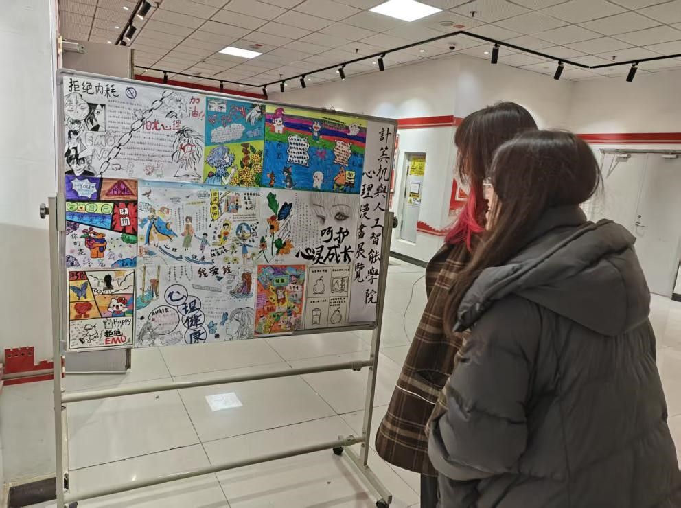为进一步扩大活动影响力,让更多学生感受心理健康教育的氛围,学院将所有参赛作品在学院大厅进行集中展示。一幅幅色彩鲜明、充满温度的漫画作品,或以生动的笔触描绘校园生活中的心理瞬间,或用隐喻的手法传递积极乐观的生活态度,吸引了众多师生驻足观赏、交流探讨。