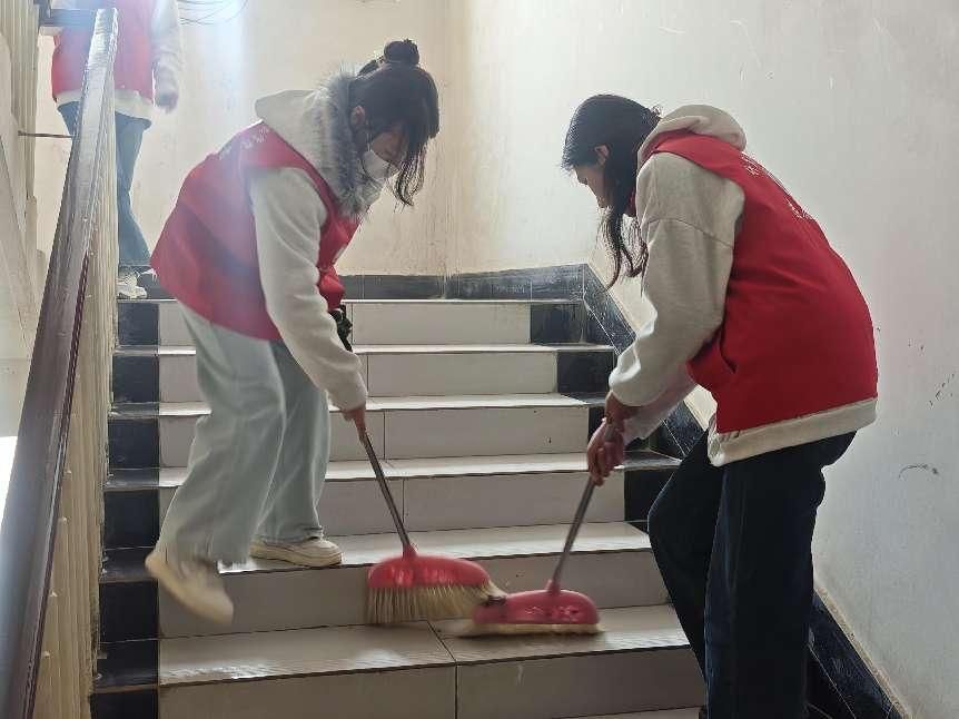 到达社区后志愿者们迅速进入状态,按照分组有序开展工作、分工协作,大家手持扫帚、抹布等清洁工具,对社区的楼道、走廊、公共休息区等重点区域开展全方位清洁整治,细致捡拾地面散落的烟头、纸屑、塑料瓶等各类垃圾,认真擦拭楼道扶手、公共座椅、指示牌等公共设施,仔仔细细排查、清理,不放过任何一处卫生死角。志愿者们互帮互助、配合默契,不畏脏累、干劲十足,充分展现出青年志愿者吃苦耐劳、乐于奉献的良好精神风貌,同时在清洁的间隙,大家还主动向过往人员宣传环保理念和垃圾分类相关知识,积极倡导大家共同爱护、用心守护公共环境。