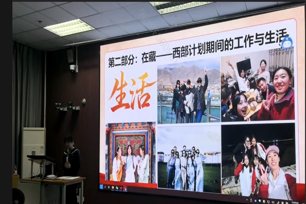 宣讲会上,三位来自北京高校的西部计划援藏志愿者,结合各自岗位经历,为同学们带来了一场真实生动的分享。北京联合大学应用文理学院档案专业的杨亚洲学长,分享了在北京援藏指挥部项目管理部将专业知识融入援藏项目推进的实践故事;北京化工大学安全工程专业的施妮学姐,讲述了在规划发展部参与援藏项目建设的严谨与坚守;首都师范大学学前教育专业的仇伯禹学姐,则传递了教育援藏岗位上的温暖与力量。线上参会的我院学子全程认真观看、专心聆听,全面了解西部计划相关政策与援藏工作日常,对西部计划西藏专项有了系统且清晰的认知。